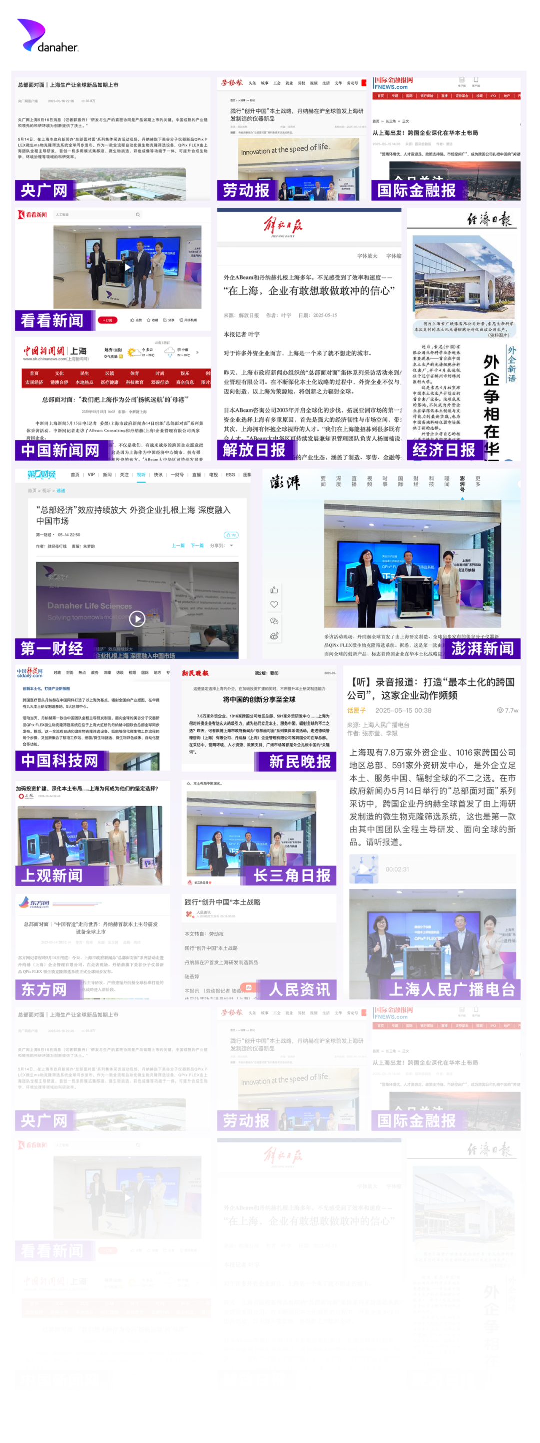丹纳赫从上海出发,将创新之力辐射全国。丹纳赫深耕中国的承诺和“创升中国”本土化战略成果,受到包括央广网、中国新闻网、第一财经、看看新闻、澎湃新闻等权威媒体广泛关注。